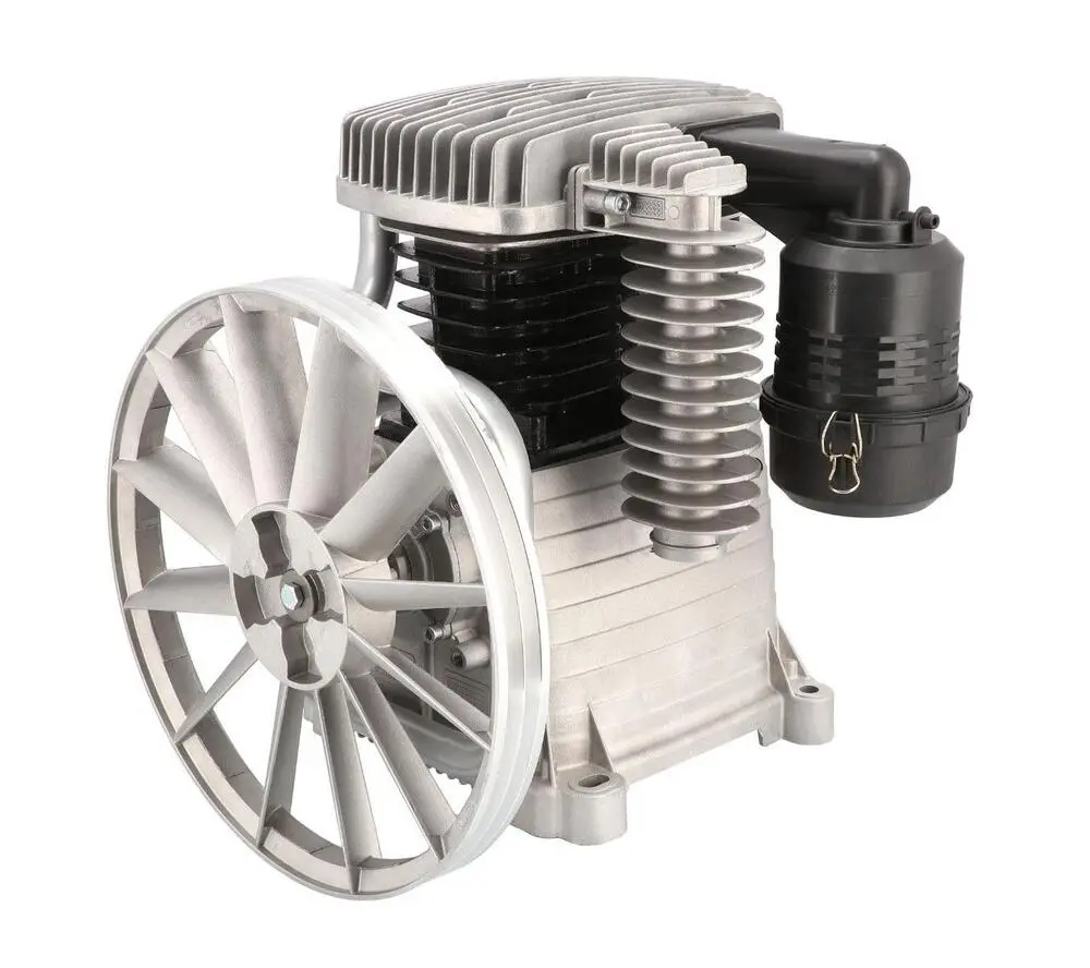 Kraftig 2-trins kompressorblok med max 11 bar og op til 1210 l/min, velegnet til professionel opbygning og udskiftning i større trykluftsystemer.