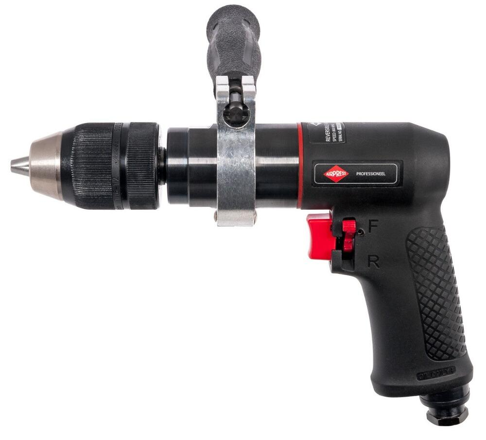Luftdrevet boremaskine fra Airpress med 13 mm kapacitet og 800 RPM. Ergonomisk greb og stabil drift gør den velegnet til både præcisionsboring og værkstedsopgaver.