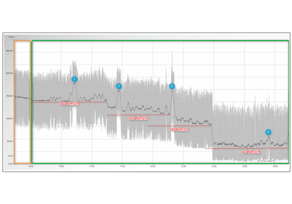 Med VA 500 kan du nemt registrere og reducere energiomkostninger og CO₂-udledning, samtidig med at du øger bæredygtigheden i dit trykluftsystem. Flowmåleren gør det muligt at overvåge forbruget og analysere lækageflow – med én og samme måleenhed.