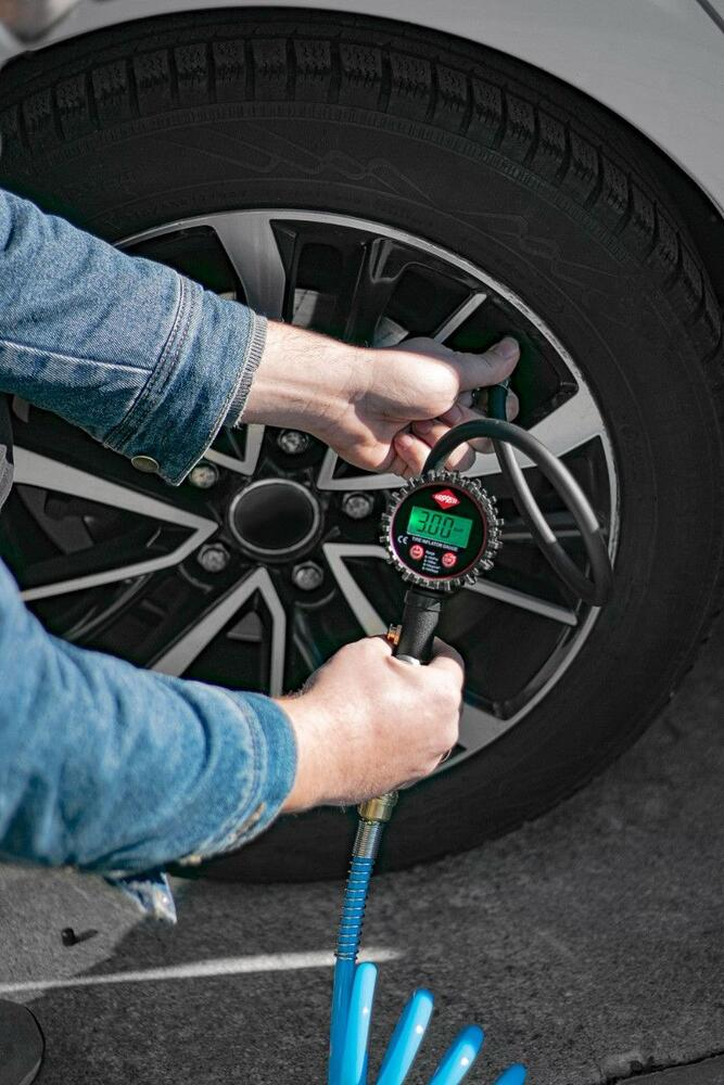 Denne digitale pumpepistol fra Airpress er et alsidigt værktøj til både oppumpning og præcis måling af dæktryk ved hjælp af trykluft. Den lange 60 cm konstruktion giver god rækkevidde, og den digitale trykvisning gør det nemt at aflæse og justere trykket nøjagtigt. Pumpepistolen er velegnet til bil-, motorcykel- og cykeldæk såvel som til luftfyldt udstyr som bolde og oppustelige madrasser. Standard 1/4" tilslutning sikrer nem kobling til trykluftslanger og kompressorer.