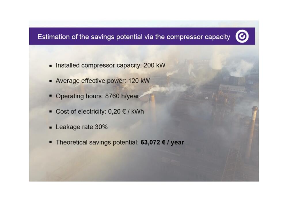 (op til ca. 10 meters afstand ved en trykluftlækage svarende til ca. 75 dkk / år) -