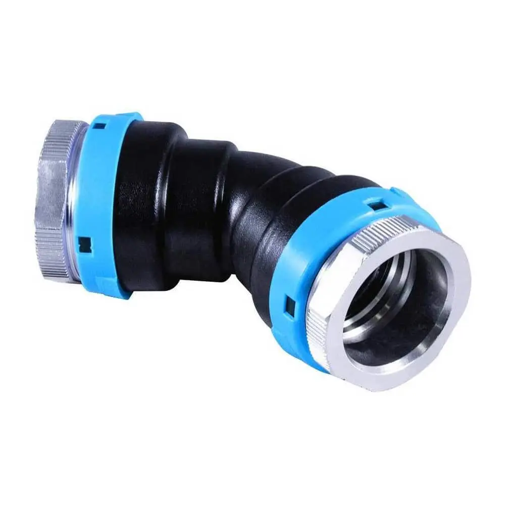 45° bøjning til Umbra-Pipe aluminiumsrør i et push-fit rørsystem. Bruges til bløde retningsskift i trykluftinstallationen og fås i flere diametre.