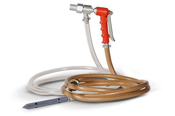 - Simpelt arbejdsprincip - bare stikke sugelansen i beholderen med blæsemiddel og trykke på aftrækkeren