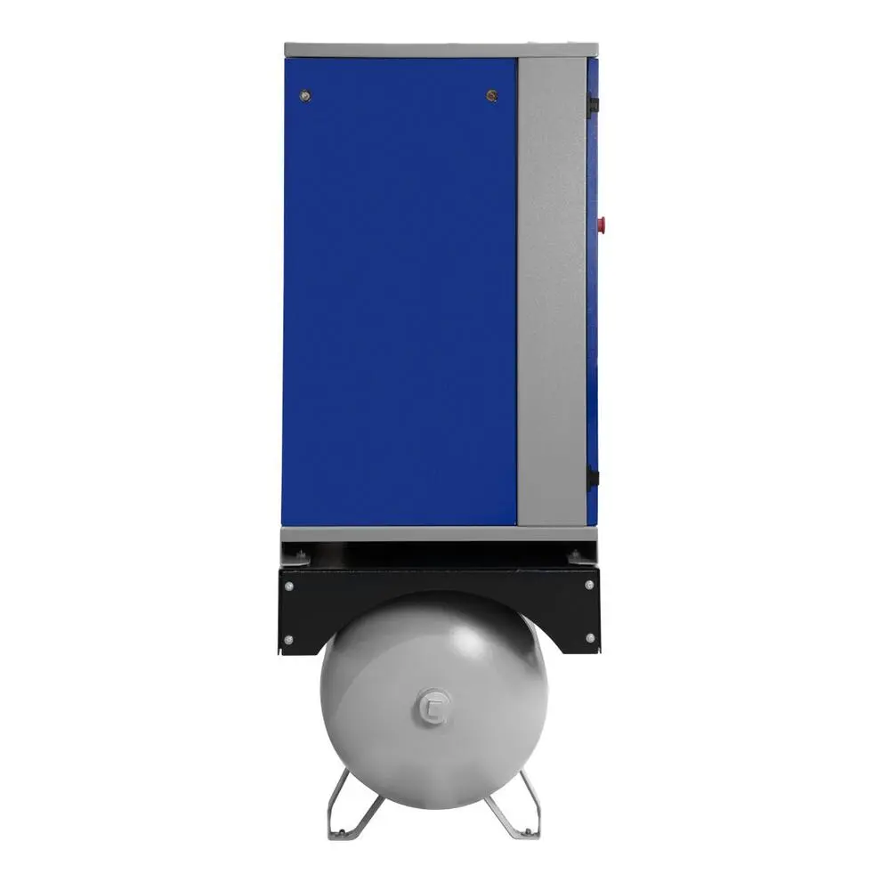 Professionel variabel skruekompressor med max 10 bar, 1 100–2 160 l/min, 15 kW motor, 500 l beholder og integreret køletørrer.
