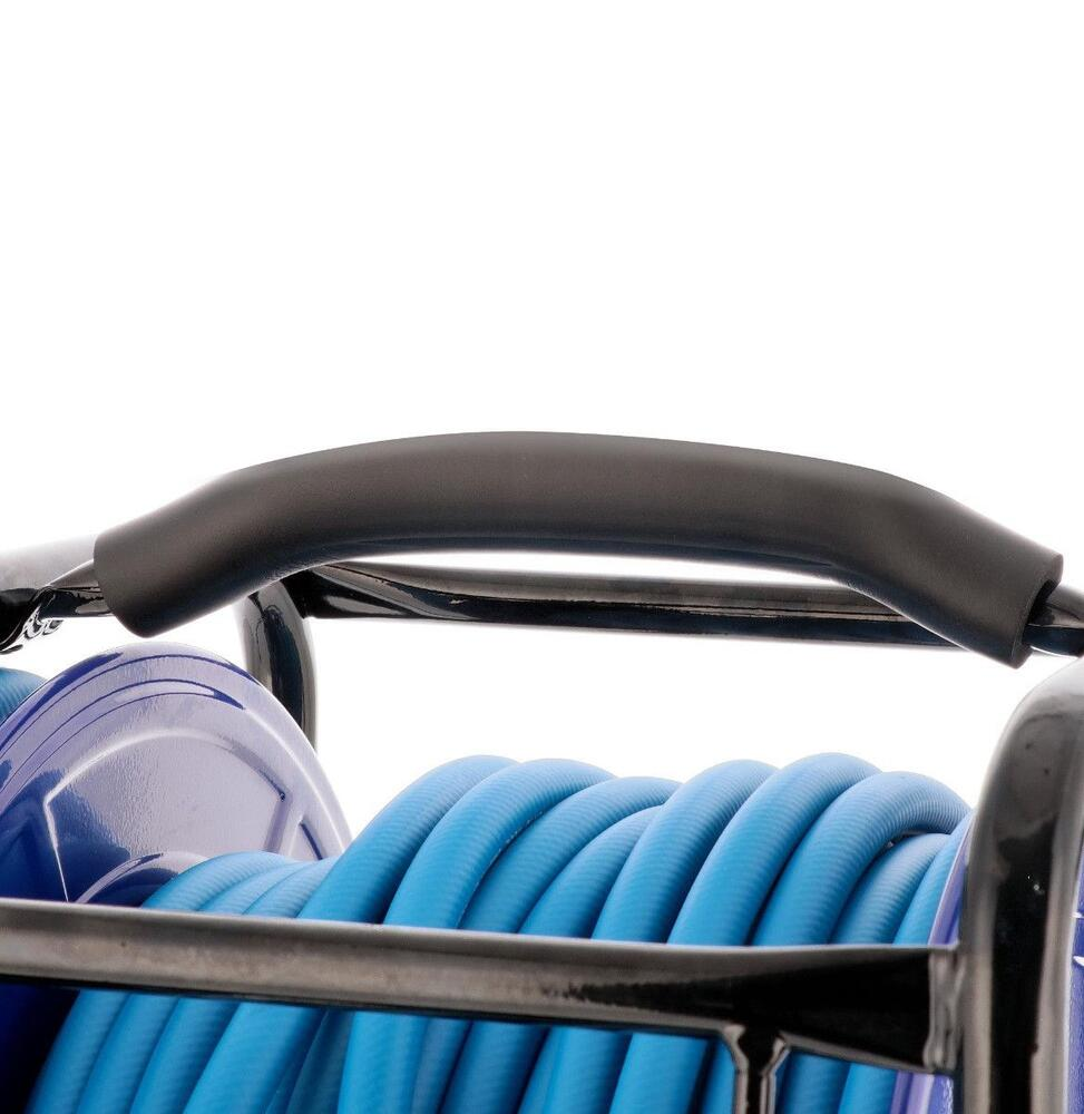 Den automatiske oprulningsmekanisme med låsefunktion gør det nemt at trække slangen ud i den ønskede længde og rulle den sikkert ind igen efter brug. Den robuste gulvmodel står stabilt på arbejdspladsen og giver hurtig adgang til trykluft, så du undgår løse slanger og forbedrer både arbejdsgang og sikkerhed.