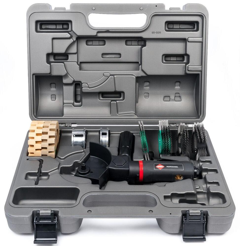 Airpress lamelsliber med tilbehør er et effektivt og brugervenligt trykluftværktøj, udviklet til præcis slibning og overfladearbejde. Med en hastighed på op til 3.500 omdrejninger pr. minut er den velegnet til opgaver som afgratning, rengøring af overflader samt let slibning af metal og andre materialer. Det kompakte design gør sliberen nem at håndtere, også ved længerevarende arbejde, og den trykluftdrevne konstruktion sikrer stabil drift uden elektriske komponenter. Leveres med tilbehør, så værktøjet er klar til brug med det samme i både værksted, produktion og industri.