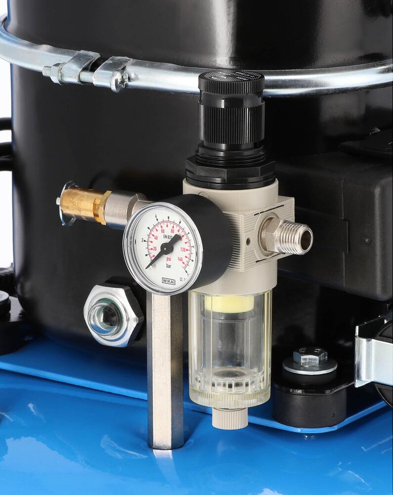 Airpress L 9-75 er en lydsvag, mobil stempelkompressor, ideel til opgaver hvor et lavt støjniveau og kompakt format er vigtigt. Perfekt til små værksteder, hobbyprojekter, kontorbrug, airbrush-arbejde eller let service.