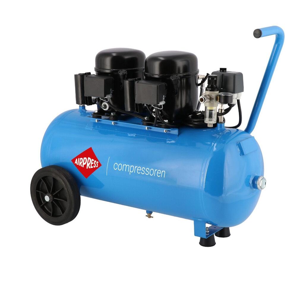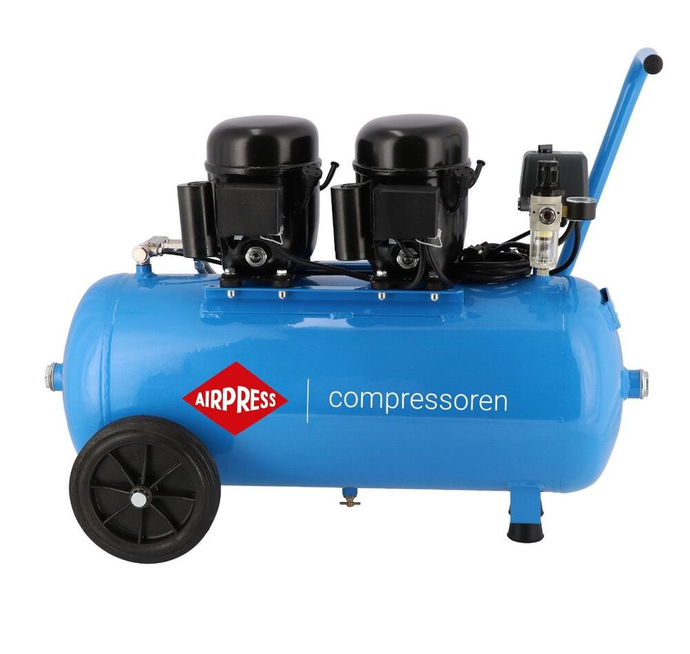 L 100-50 er en ekstremt støjsvag og effektiv to-stempels stempelkompressor, udviklet til miljøer hvor stilhed, præcision og driftssikkerhed er afgørende. Med en motoreffekt på 1 HK (0,74 kW), et maksimalt tryk på 8 bar og en ydeevne på 64 l/min, er denne model ideel til både professionelle og private, der har brug for stabil trykluft uden støjgener.